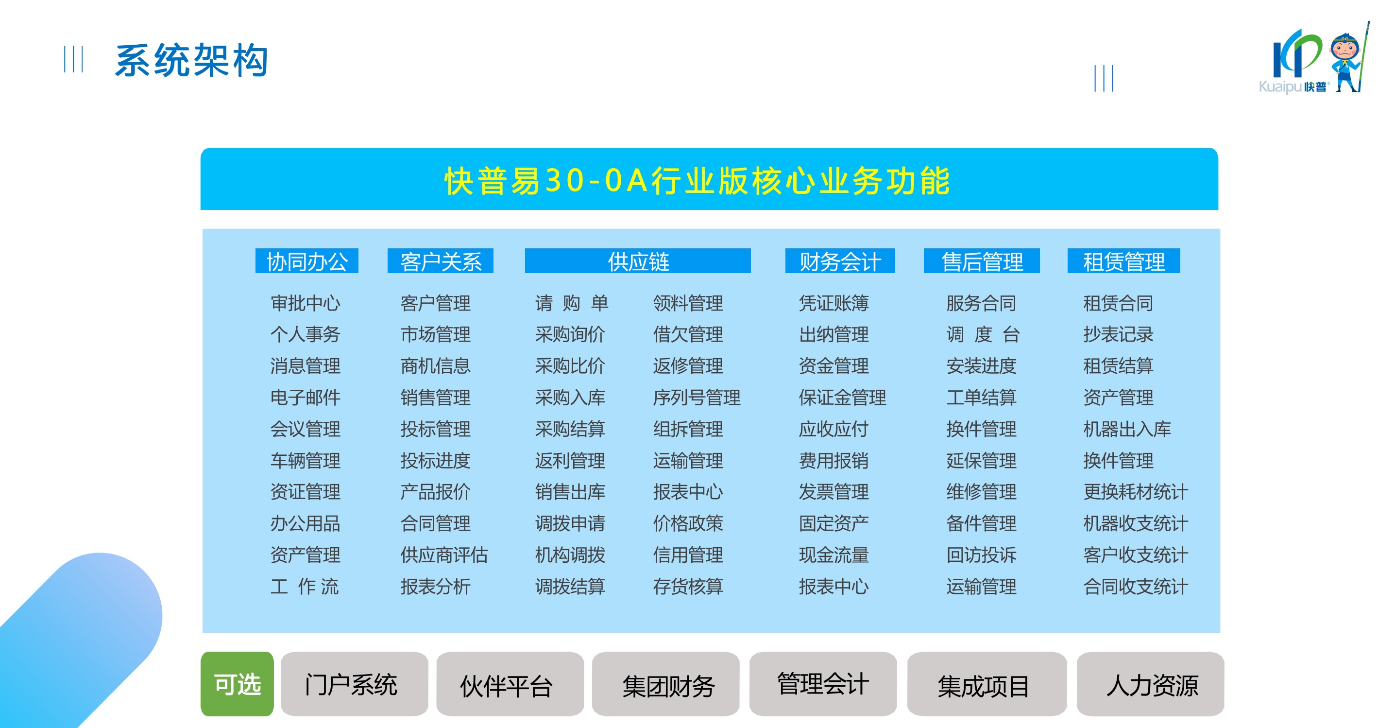 適用:產(chǎn)品分銷、設(shè)備租賃、運維服務(wù)、系統(tǒng)集成、政府采購、電商等OA企業(yè)。