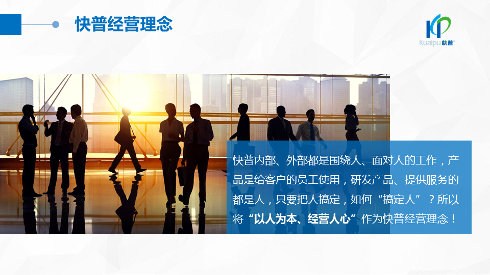 溫董在大會(huì)上指出:“成功的企業(yè)、成功的產(chǎn)品都在做符合人性的事!成功的個(gè)人都在挑戰(zhàn)人性弱點(diǎn)!作為中國(guó)企業(yè)信息化管理的服務(wù)商,我們應(yīng)該充分理解人性定律,為客戶提供一切人性化的產(chǎn)品與服務(wù),讓快普成為最懂企業(yè)用戶需求的中國(guó)企業(yè)!”